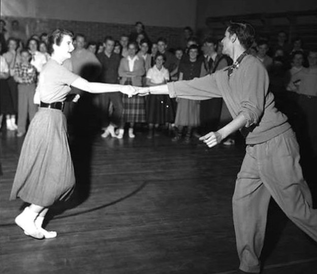 The act of dancing to fast pop or rock music.